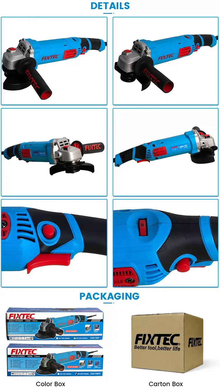 -Cambio rápido de ruedas: Este amoladora angular eléctrica Tiene un botón de bloqueo del eje integrado, que ayuda al usuario a cambiar la muela de forma fácil y rápida.