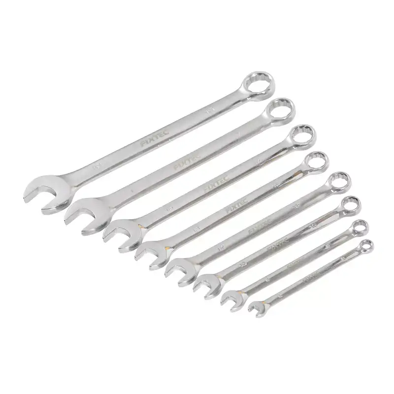-Extremos abiertos compensados: Las llaves combinadas de este juego están diseñadas con extremos abiertos desplazados. Esta característica permite un fácil acceso a tuercas y pernos en espacios reducidos. El diseño desplazado proporciona una maniobrabilidad mejorada, lo que facilita aplicar torsión y completar el trabajo de manera eficiente.
