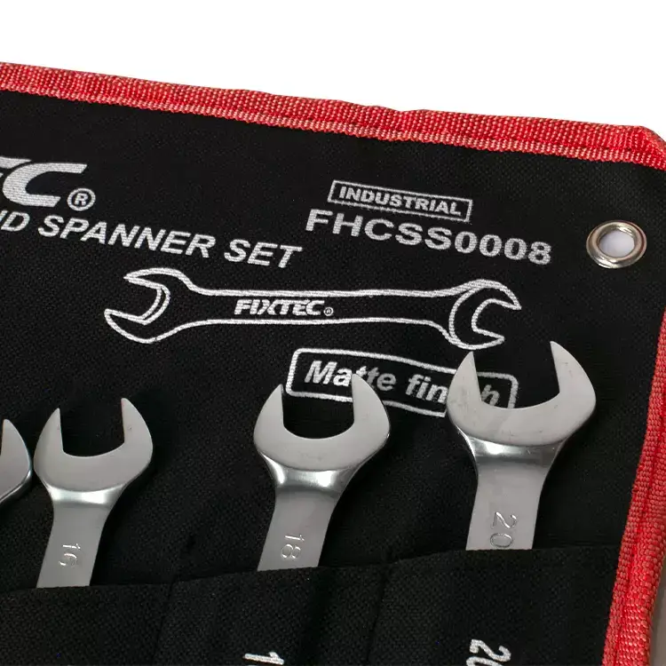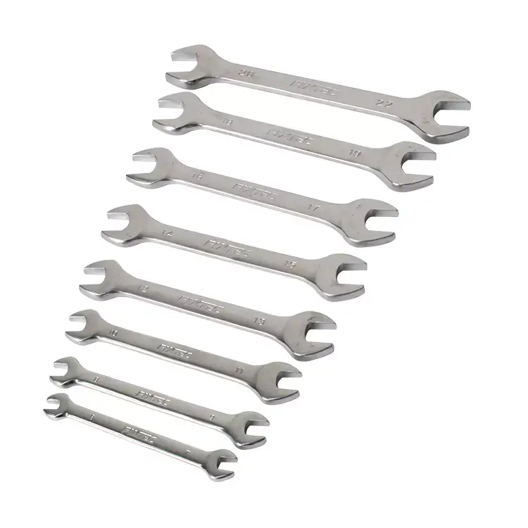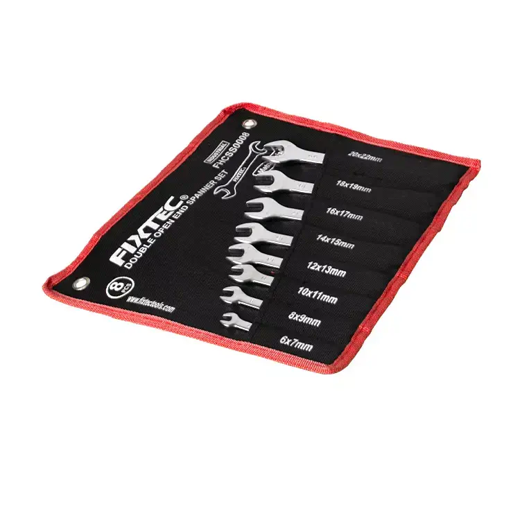 -Extremo de caja reversible: Una de las características clave del juego de llaves de boca doble es el diseño de extremo de caja reversible. Este diseño permite voltear las llaves, proporcionando dos tamaños diferentes dentro de la misma llave. Ofrece versatilidad y comodidad, lo que reduce la necesidad de utilizar varias llaves y ahorra espacio en su caja de herramientas.