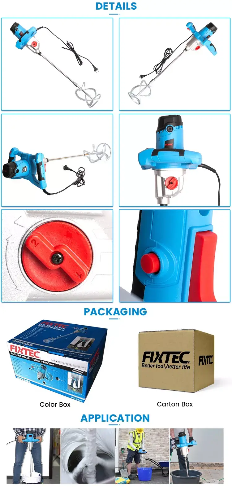 -Paleta mezcladora larga: Nuestra batidora eléctrica FIXTEC está equipada con una paleta mezcladora larga de hasta 590 mm, lo suficientemente larga como para mezclar cualquier material de manera fácil y suave. Esta máquina mezcladora de concreto también viene con un cable largo para trabajos en interiores a larga distancia.