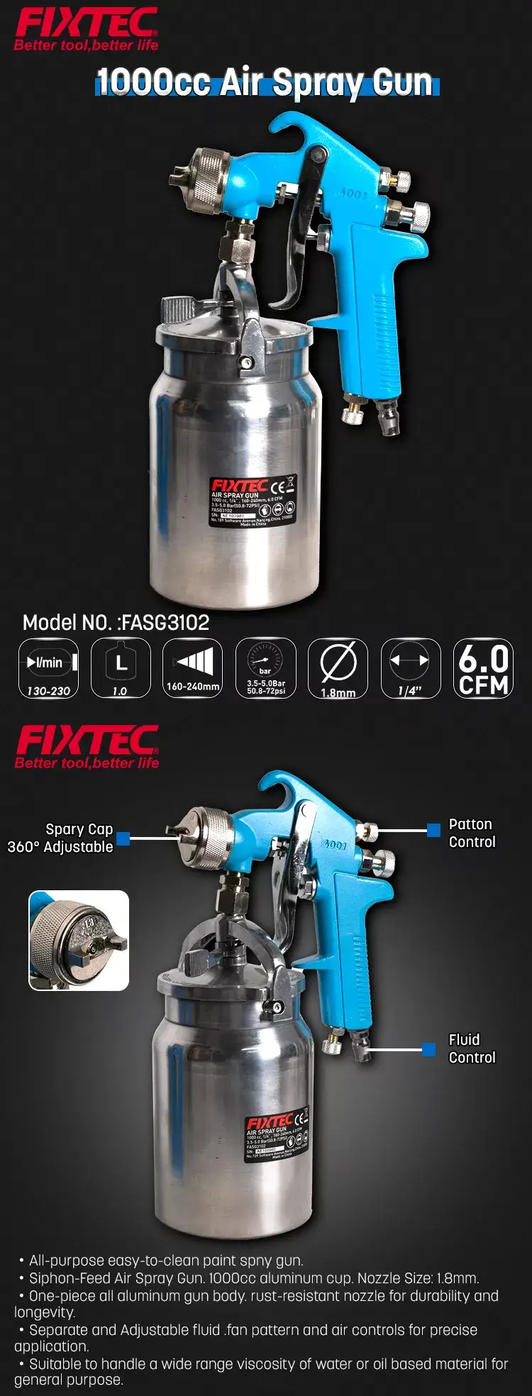 -Control de patrones: Esta pistola de pintura con aire ofrece funcionalidad de control de patrón, lo que permite a los usuarios ajustar el patrón de pulverización para cumplir con sus requisitos específicos. Ya sea que se necesite un patrón estrecho y enfocado o una cobertura más amplia y general, la función de control de patrón permite una fácil personalización. Esta versatilidad hace que la pistola pulverizadora sea adecuada para diversas tareas de pintura, desde trabajos detallados hasta cobertura de grandes superficies.