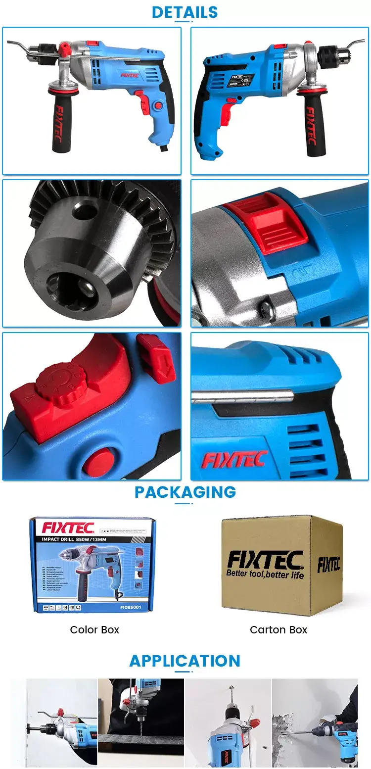 -Carcasa de engranajes de aluminio: como un taladro eléctrico de alta resistencia, se puede utilizar para grandes proyectos de construcción. Y Este taladro de impacto eléctrico está diseñado con una carcasa de engranajes de aluminio, que es duradera para garantizar un uso a largo plazo.